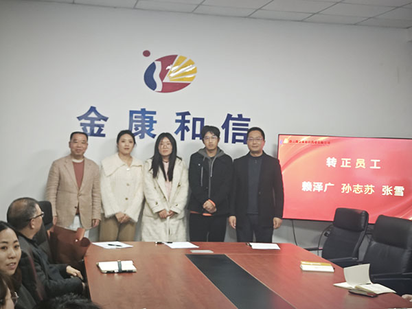 Mit allen Kollegen als Zeugen drei neue Mitglieder: Lai Zeguang, Designspezialist; Sun Zhisu, Registrierungsspezialist; und Zhang Xue, HR-Spezialist – haben ihre Probezeit erfolgreich abgeschlossen und sind offiziell Teil der JKHX-Familie geworden. Von der Erkundung und Anpassung während der Probezeit bis hin zum selbstbewussten Voranschreiten nach der Vollzeitbeschäftigung haben sie sich durch ihre gewissenhafte Leistung Anerkennung verdient und gleichzeitig neue Ideen und Vitalität in das Team eingebracht.