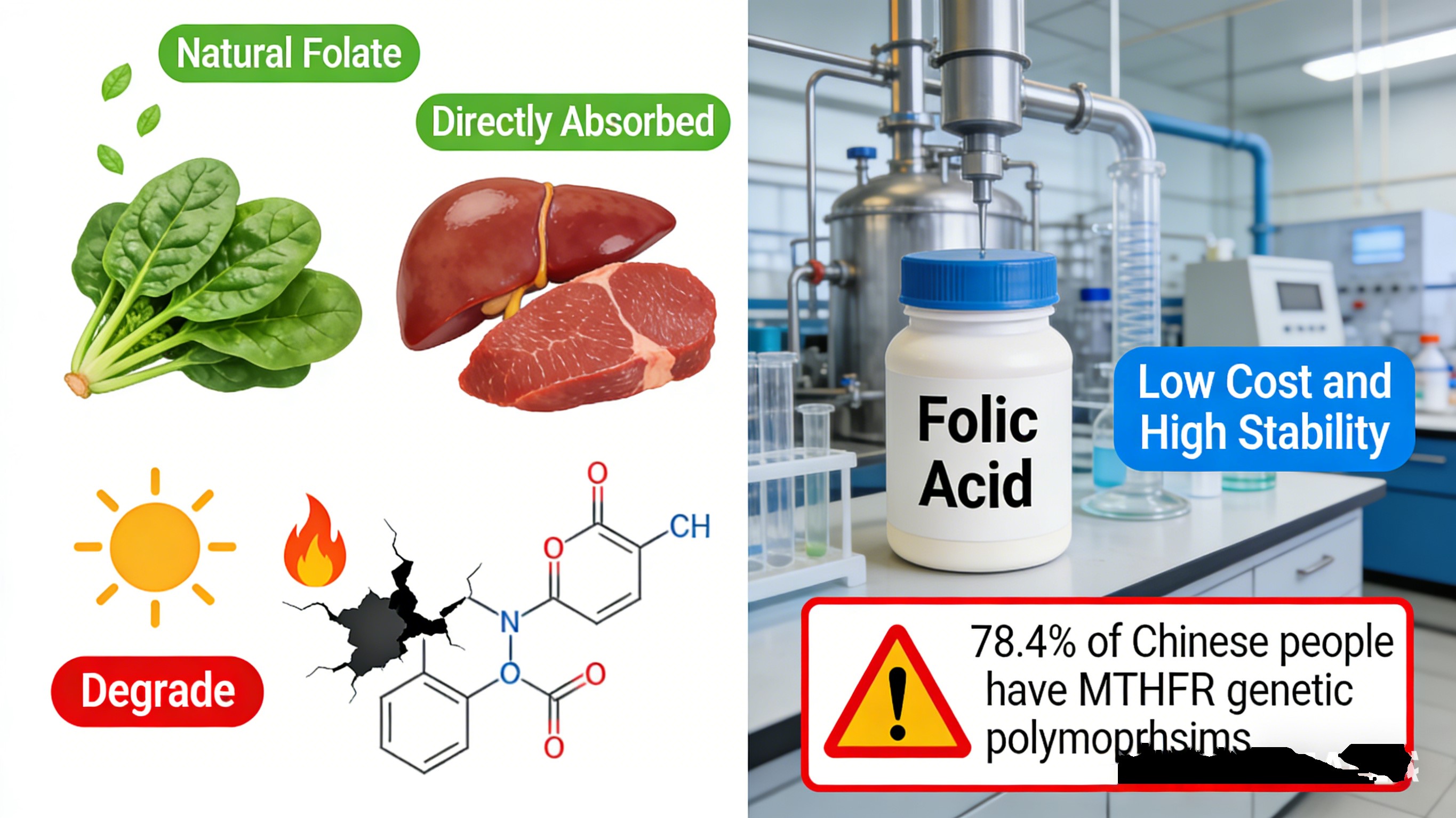 Fazit: Folsäure hat die Massenproduktion gelöst, passt aber nicht dazu das genetische Profil der chinesischen Bevölkerung, das verborgene Risiken birgt niedrige Kosten.